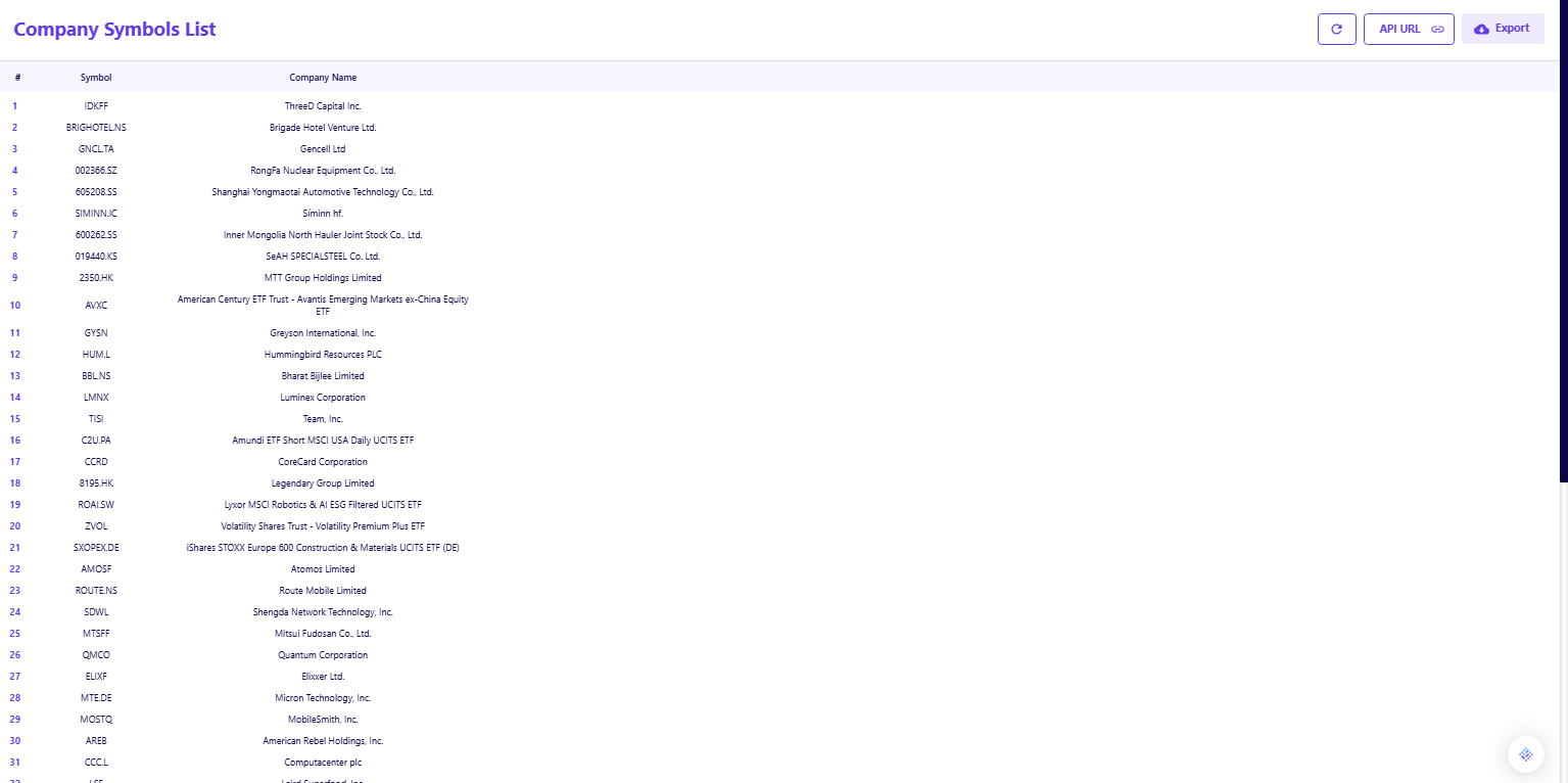 1. Benchmarking Failure: Comparing a target company's performance requires every security symbol to be correctly identified and mapped to a consistent database. When symbols conflict or are incorrectly linked to data sources, the entire peer group analysis fails. Using the FMP Company Symbols List API ensures every security is correctly identified across all internal models, providing a consistent symbol reference to eliminate identifier errors in peer comparisons.