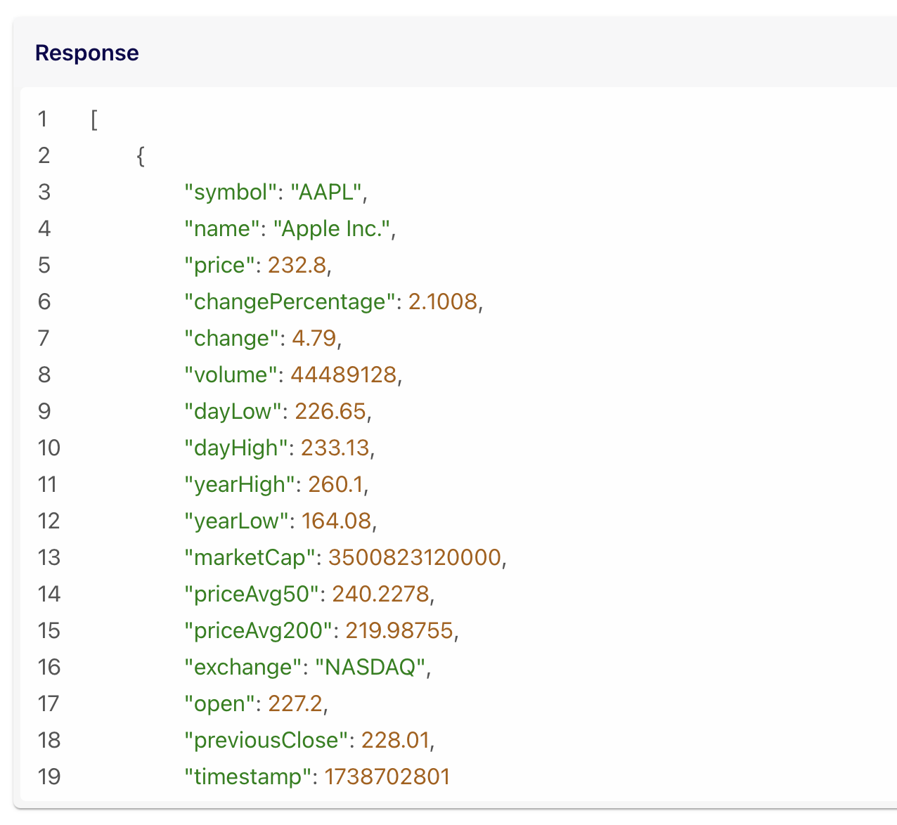 Want to see real-time data in action? Try pulling a live quote using the Stock Quote API - for example, retrieve the quote for AAPL and watch the JSON response show Apple's current price, daily high/low, and more.